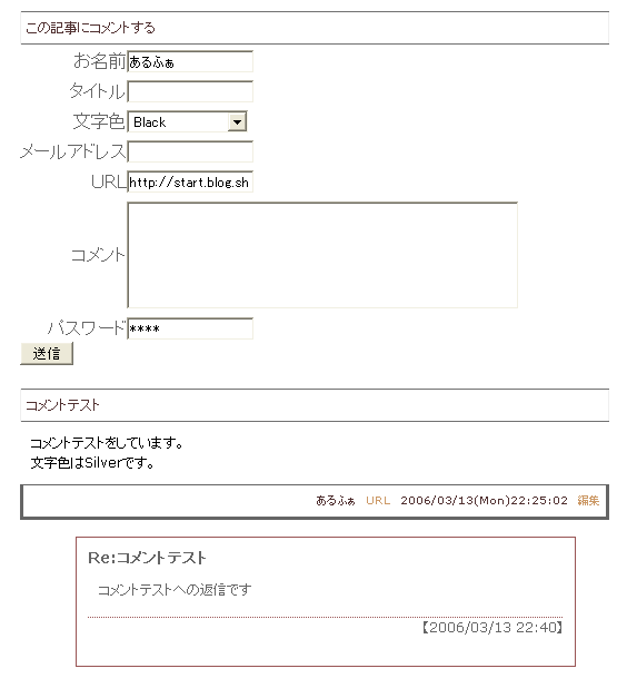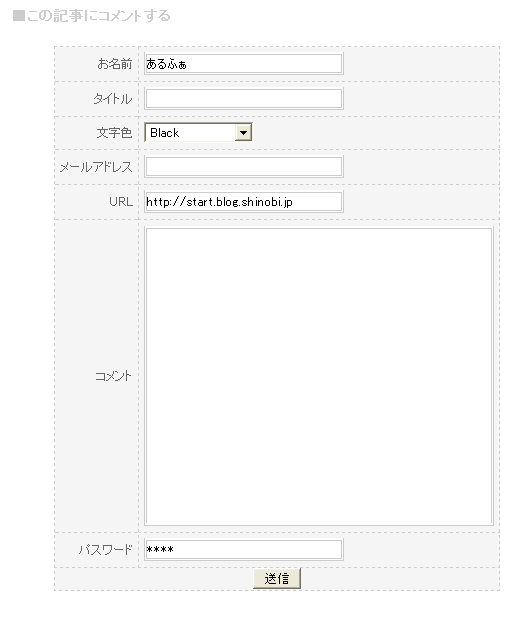 となってます。「年」のところにはそれを表示する忍者ブログの変数が入り、「月」、「日」も同様です。